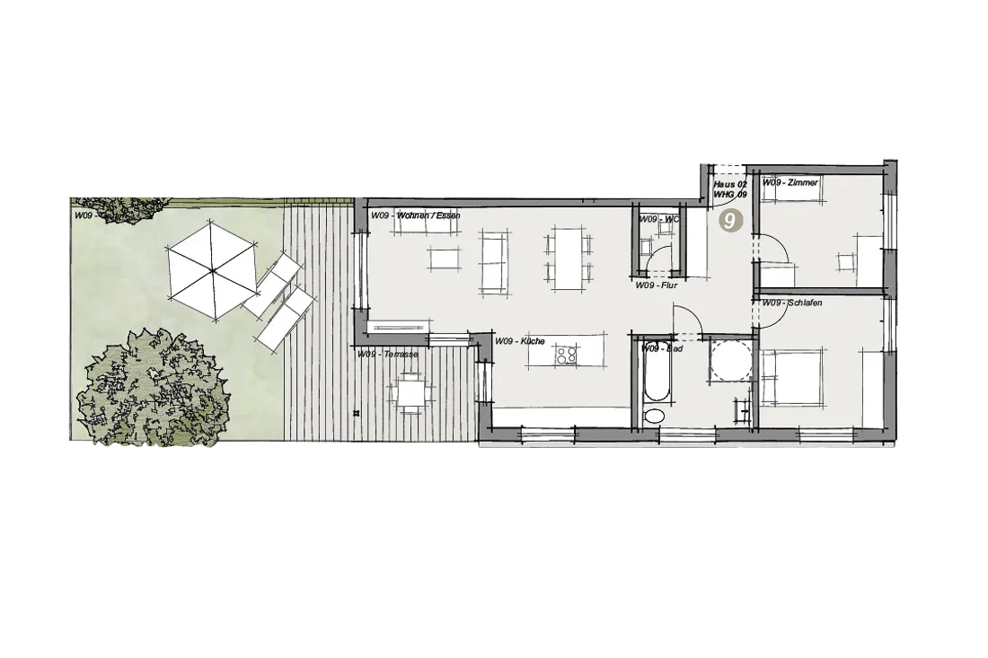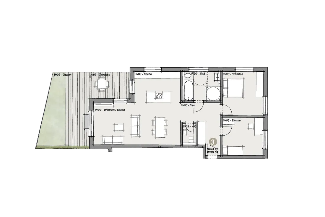 Es erwarten Sie 3-Zimmer-Wohnungen ab 90 m² mit Garten oder Balkon. Der offene Wohn- und Essbereich ist der perfekte Ort zum Entspannen und um Zeit mit der ganzen Familie zu verbringen. Die Terrasse oder der Balkon bieten den perfekten Ort zum Wohlfühlen und Abschalten.