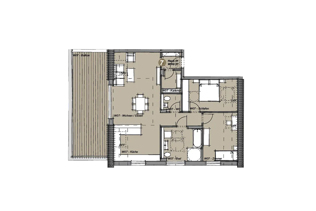Individuelle Wohnungsgrundrisse unterstreichen das urbane Wohnkonzept und sorgen dafür, dass die einzelnen Wohneinheiten für jedes Alter und jeden Lebensentwurf ein passendes Zuhause bieten.